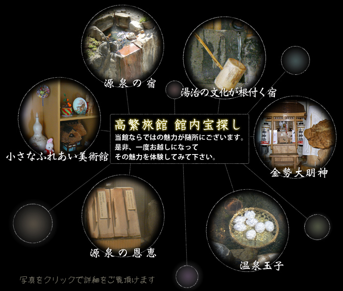 普段の忙しい日常をはなれ、おだやかな時を過ごせるのも 当旅館のオススメする魅力のひとつ。 温泉で心身ともに健康になりながら、 ゆったりと流れる時間の中でのんびり過ごしてはいかがですか。